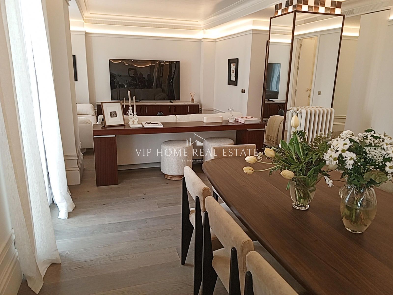 Prime Location in the Heart of Lista: Located at 84 General Oraá Street, this spectacular property is situated in one of the most sought-after and tranquil areas of the Salamanca District: the Lista neighborhood. Living here means immersing yourself in the essence of Madrid's most elegant side, where 19th-century architecture meets modern sophistication. Just steps from the apartment, you can enjoy the shopping excellence of the Golden Mile (Serrano and José Ortega y Gasset streets) and an unparalleled cultural scene. Nearby Points of Interest: The strategic location of this apartment allows you to walk to the most emblematic landmarks of the capital: Culture and Art: A short distance from the Lázaro Galdiano Museum and its impressive collection, as well as the Juan March Foundation. Leisure and Gastronomy: Surrounded by Madrid's most exclusive restaurants and inviting boutique cafés. Its proximity to IE Business School also makes it a highly dynamic location. Green Spaces: Retiro Park, the city's green lung, is a pleasant walk away, ideal for sports and relaxation. A High-Quality Renovation: The property has undergone a complete renovation, designed to maximize light and space. It's not just an apartment; it's an interior design project where every detail has been carefully selected. Interior Design and Furnishings: It comes fully furnished with designer pieces that provide warmth and functionality. The neutral color palette and high-quality materials create an atmosphere of serenity. State-of-the-art Kitchen: Equipped with top-of-the-range appliances from leading brands, perfectly integrated into the social area to encourage conviviality. Climate Control and Comfort: Modern climate control systems (individual air conditioning and heating) ensure comfort year-round. High-resistance wooden floors and double-glazed windows ensure complete acoustic and thermal insulation. The Salamanca District: A Safe Bet. Investing in General Oraá is a safe bet. The Lista neighborhood stands out for its safety, its elegant atmosphere, and its excellent connectivity via public transport and quick access to the Golden Mile. It is the ideal place for those seeking the distinction of a historic area without sacrificing the modernity of a brand-new home.