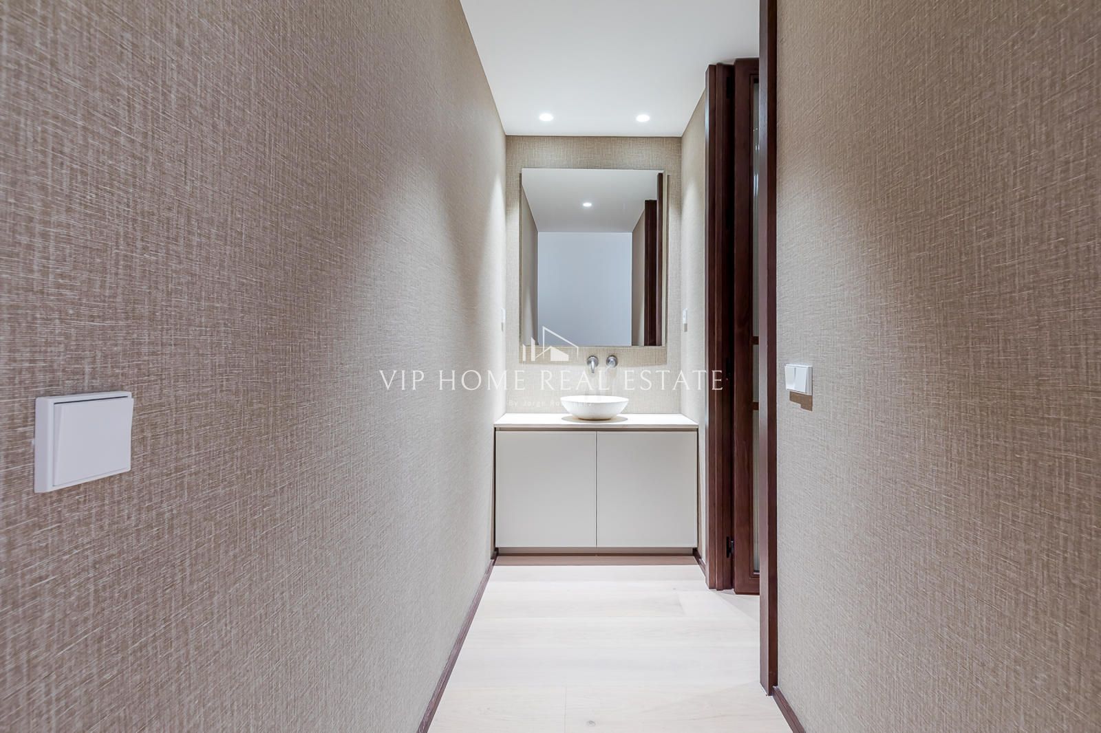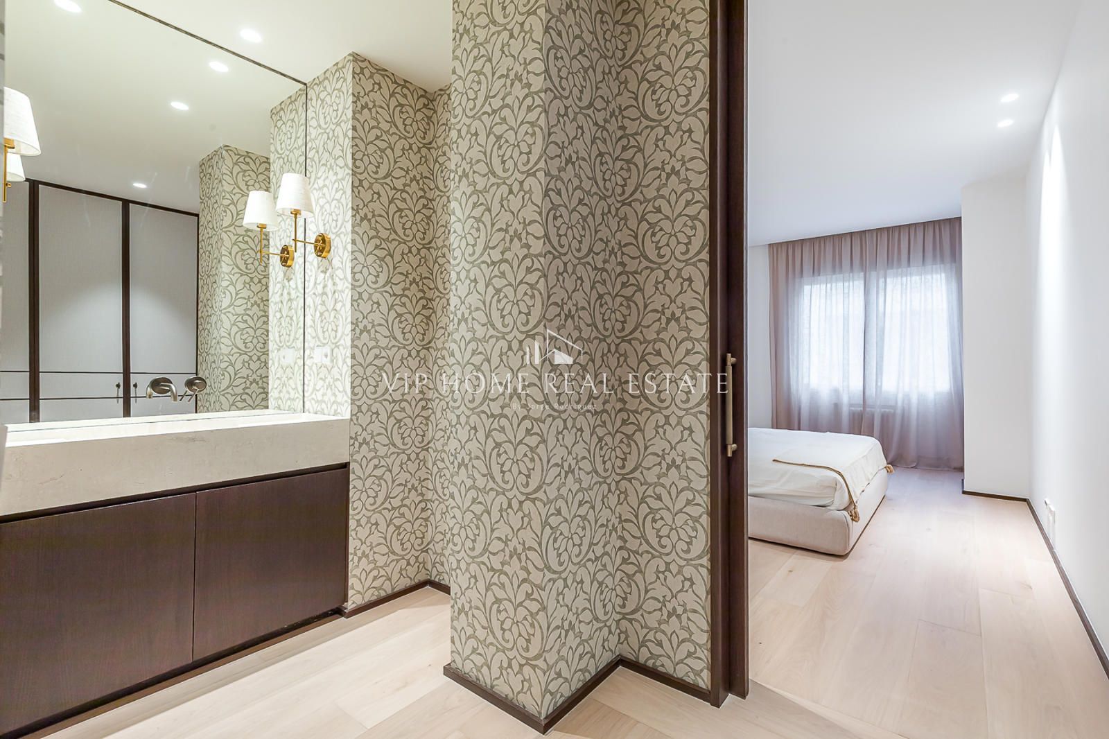 All'interno di un edificio impeccabile si nasconde un gioiello del design contemporaneo. La ristrutturazione integrale è stata eseguita con una premessa chiara: il lusso silenzioso. La zona sociale si apre in un tripudio di ampiezza e luce, dove linee pulite e soluzioni architettoniche moderne creano un'atmosfera di sobria eleganza. I pavimenti in rovere di alta qualità guidano lo sguardo verso le grandi vetrate che inondano di chiarezza ogni angolo.