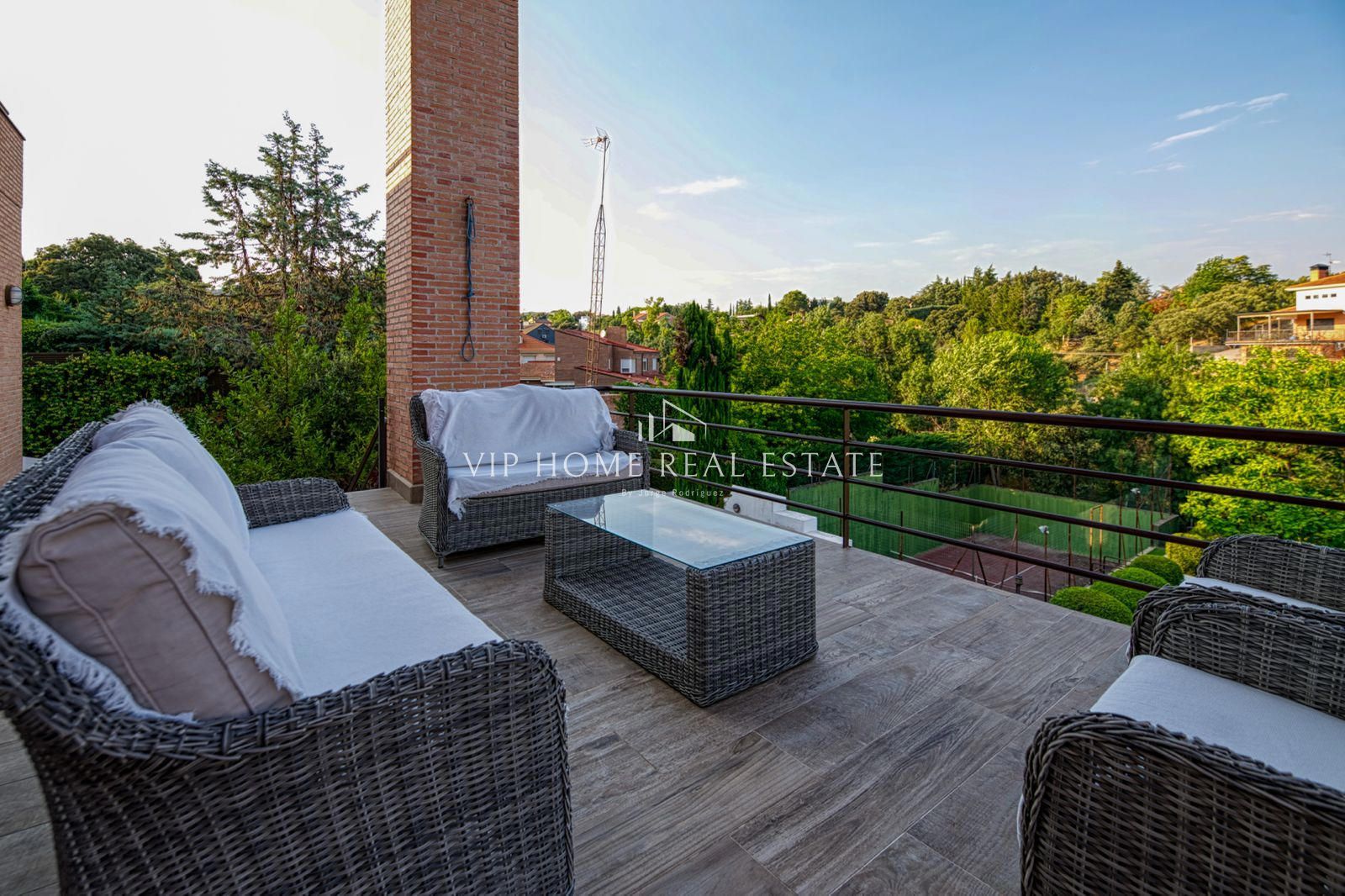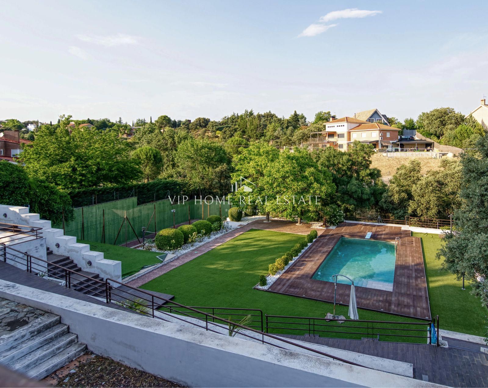 Esclusiva villa classica con piscina, campo da paddle tennis, palestra, sauna e molto altro. A Las Rozas, scopri questa magnifica proprietà in stile classico, situata in una delle zone più esclusive di Las Rozas, a nord-ovest di Madrid. Con oltre 700 m² costruiti su un grande terreno di 2.500 m², questa villa offre privacy, comfort e un'eccellente qualità della vita in un ambiente naturale incomparabile, a pochi minuti dal centro di Madrid. La casa principale è distribuita principalmente su un confortevole piano terra, con tre ampie camere da letto, tre bagni, una cucina completamente attrezzata, due piacevoli terrazze, un soggiorno, una sala da pranzo e un elegante soggiorno con soffitti a doppia altezza che donano luce e raffinatezza allo spazio. Al piano inferiore si trova una casa indipendente, ideale per gli ospiti o il personale, dotata di soggiorno, cucina, camere da letto, palestra, sauna e bagni, nonché accesso diretto al giardino e alle aree ricreative. Il piano superiore ospita una zona ufficio, un'ulteriore camera da letto con bagno privato e due terrazze private con vista libera. Tra i suoi numerosi comfort, troviamo una piscina privata, un campo da paddle tennis, riscaldamento a pavimento al piano principale, aria condizionata canalizzata, riscaldamento autonomo tramite piante, pannelli solari, energia aerotermica e un giardino con erba sintetica, che ne facilita la manutenzione senza rinunciare all'estetica. Con un totale di 8 camere da letto e 7 bagni, questa proprietà è perfetta per famiglie numerose o per chi cerca spazio, funzionalità e distinzione. Tutto questo a Las Rozas, uno dei comuni più ambiti per la sua sicurezza, i servizi, le scuole internazionali, le aree verdi e gli ottimi collegamenti con Madrid.
